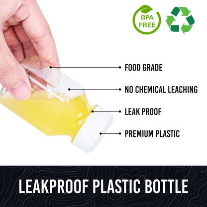 - 100% FOOD GRADE - These small juice bottles are made of food grade PET materials. It's BPA Free, no chemical leaching which is safe and tasteless so you can fully enjoy your drinks.