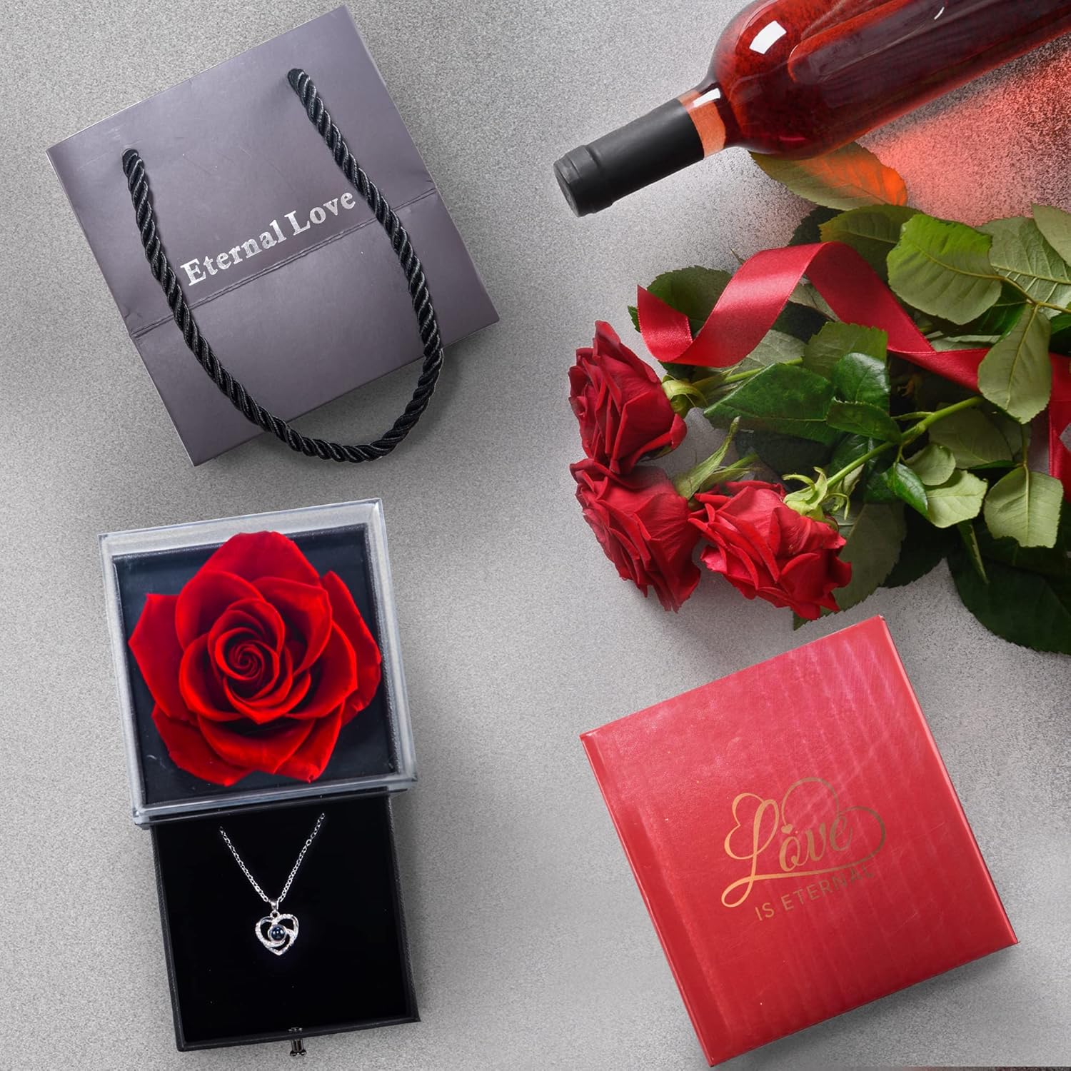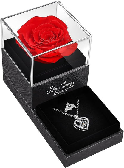 Norcalway Preserved Real Rose with Necklace I Love You in 100 Languages - Eternal Flower Perfect Women, Girlfriend Or Wife