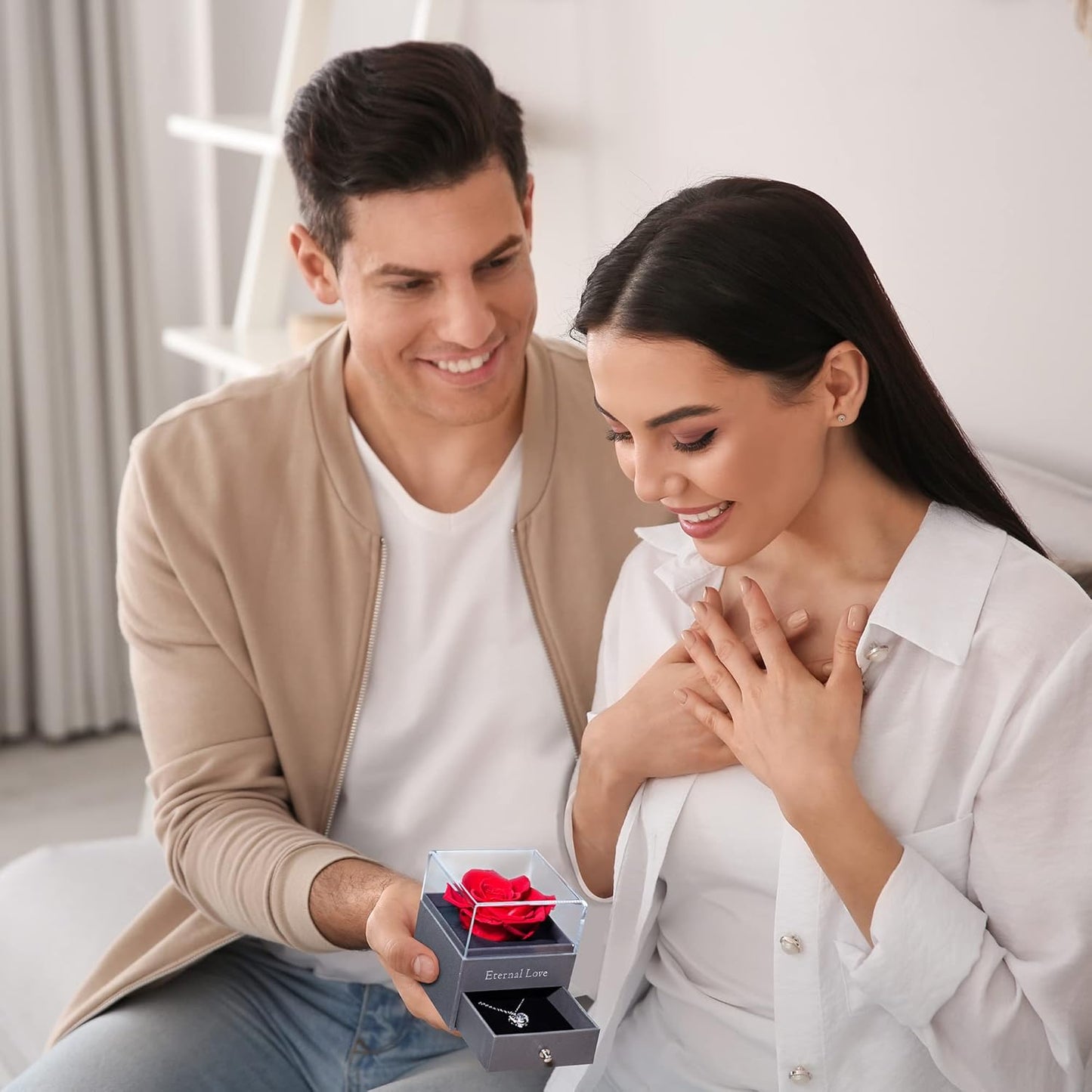 - BEAUTY IN A BOX --- Unwrap the gift of beauty with this stunning gift set that includes a preserved real rose and a heart-shaped necklace that serves as a constant reminder of your love and affection. Presented in an exquisite gift box, this set also comes with a personalized gift card, making it the perfect gift for your loved one. This gift set is perfect for any occasion, from birthdays to anniversaries, from Valentine's Day to Mothers Day, and is sure to capture your loved one's heart.